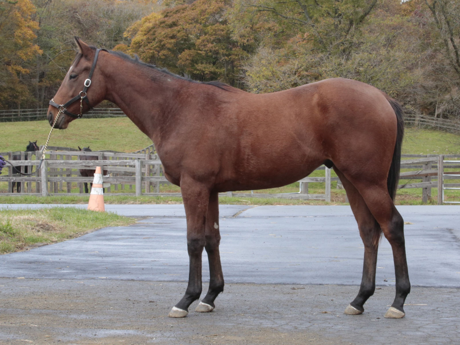 北海道・新冠のコスモヴューファームにて調整中。坂路でダク、ハッキングで1本というメニューを消化しています。