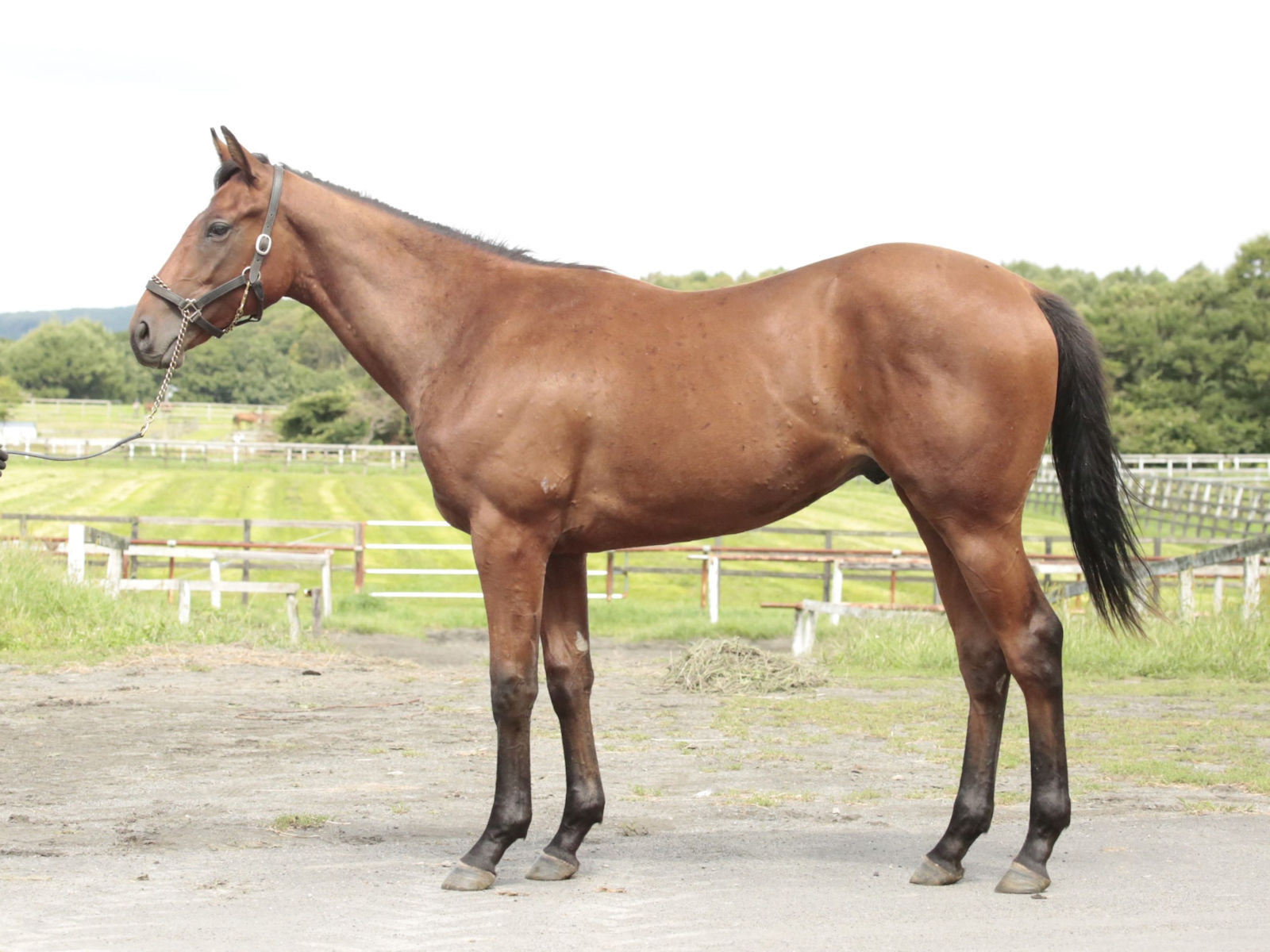 北海道・新冠のコスモヴューファームにて調整中。坂路でダク、ハッキングで1本というメニューを消化しています。