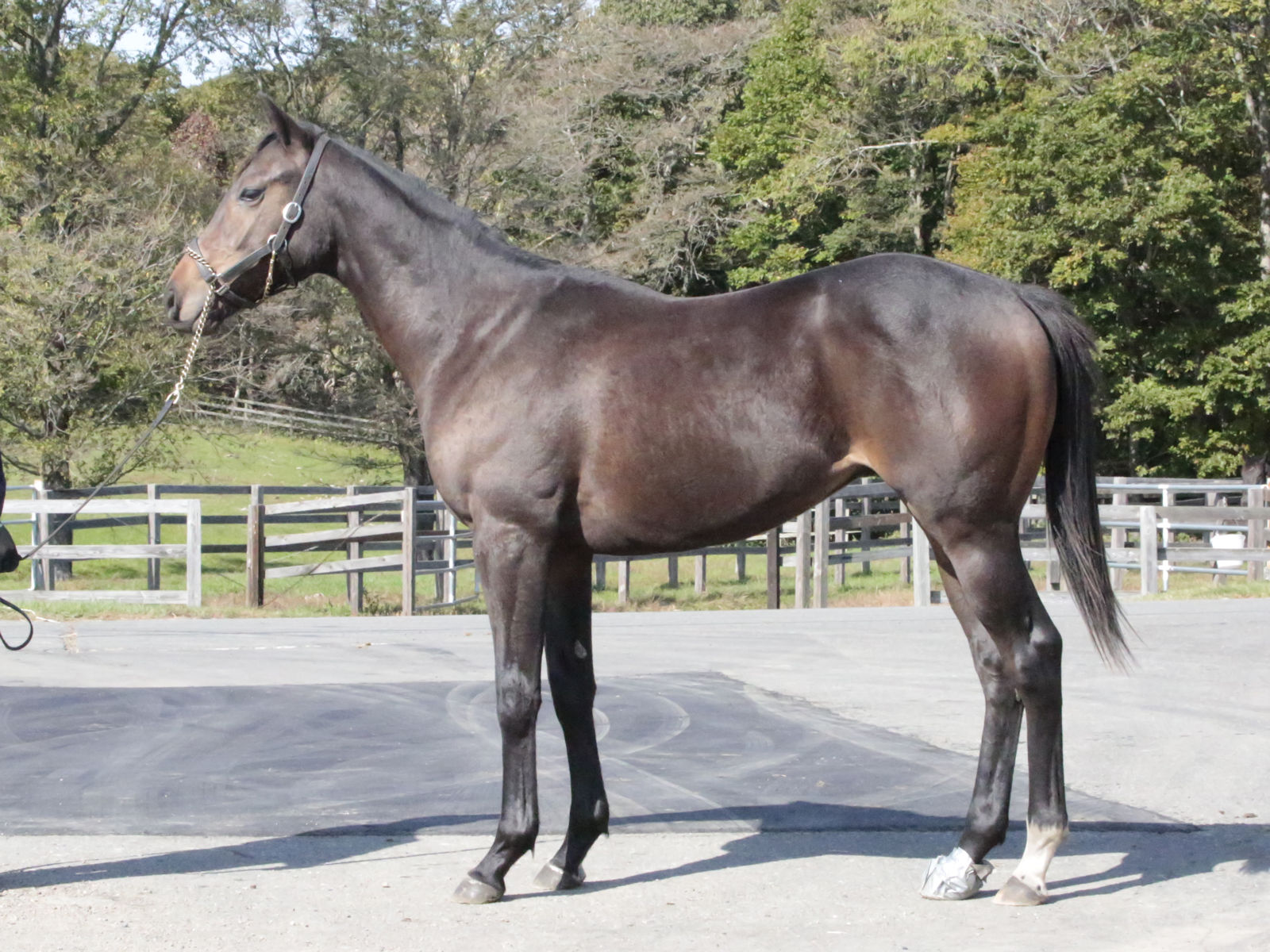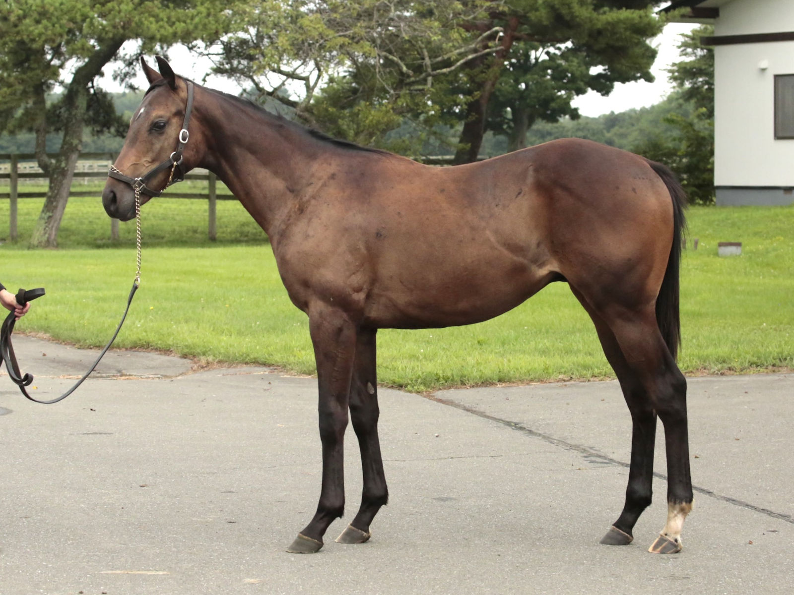 北海道・新冠のコスモヴューファームにて調整中。パドック放牧を消化しています。