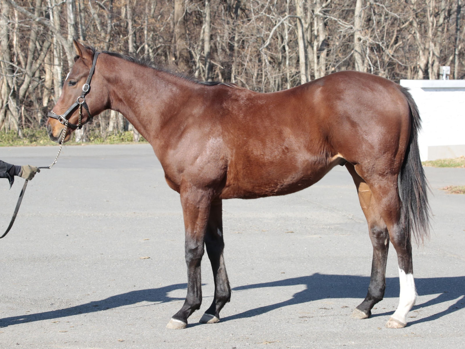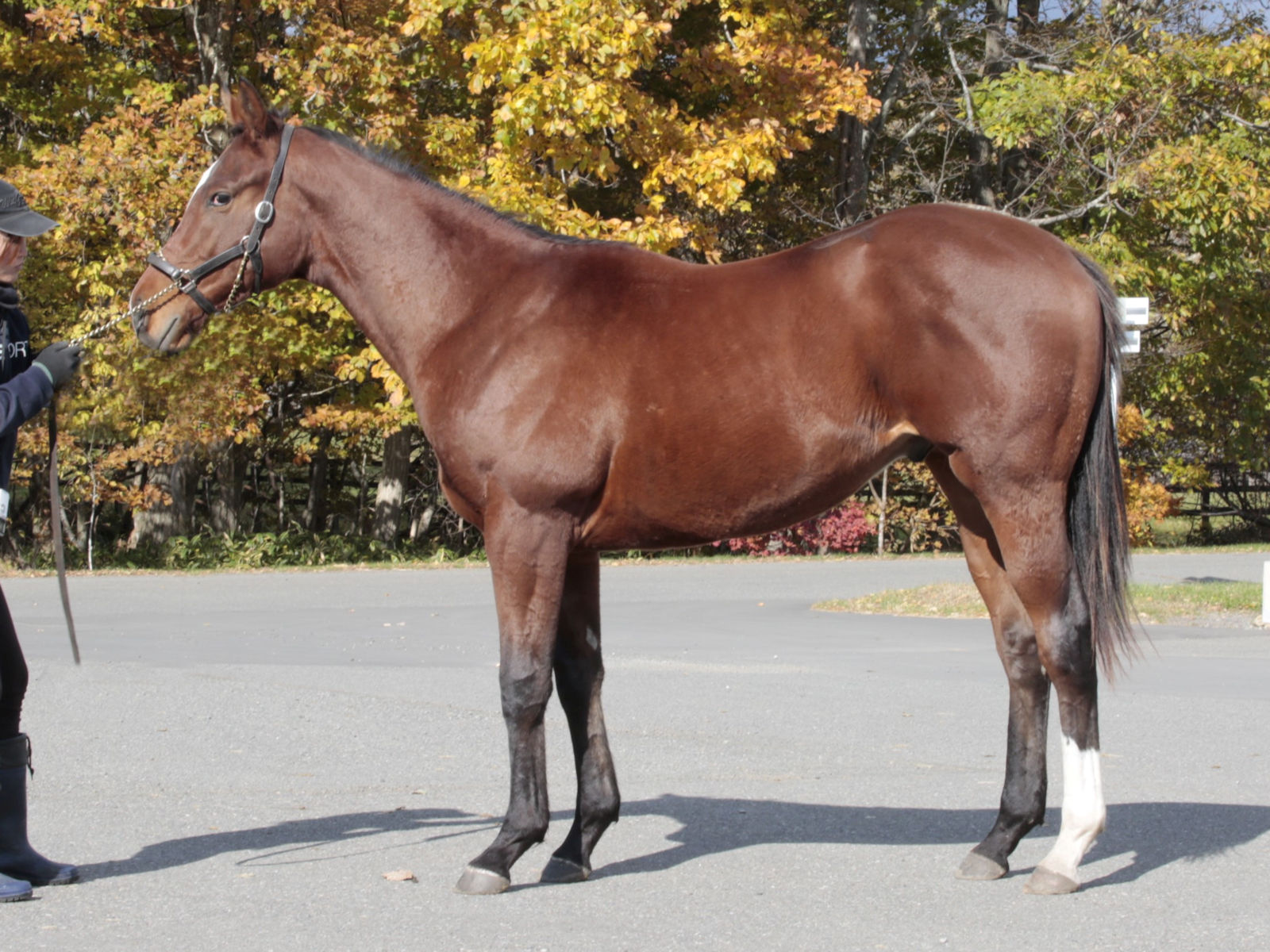 担当者は「馴致を終えて、今月上旬からは角馬場での騎乗調教に移行しましたが、広い馬場だと騎乗者に対して反抗したり、人の指示に従順に従うことができなかったため、ロンギ場での騎乗運動に戻しています。ロンギ場でもまだ手を焼かせていますが、母の産駒ですのでこれぐらいは想定内です。今後も馬とのコンタクトを取りながら一歩ずつ前に進んでいきたいと思います」と話していました。