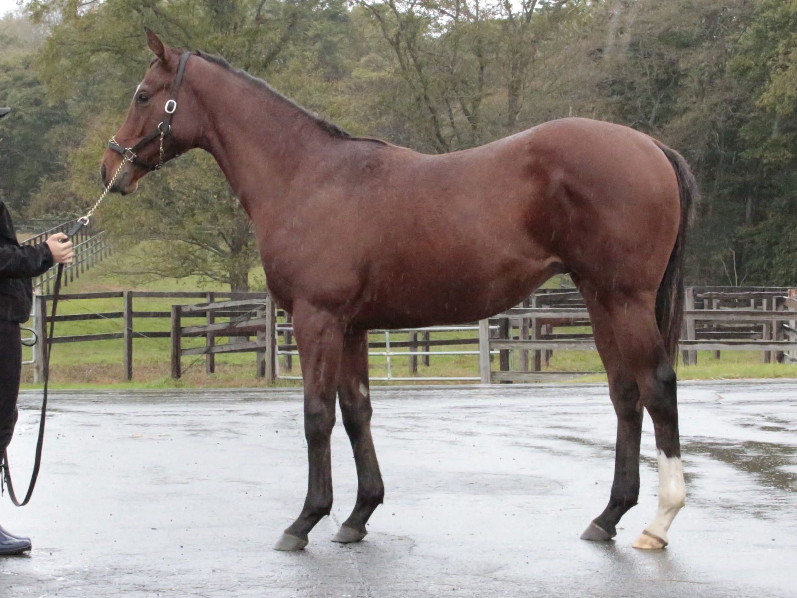 担当者は「馴致を終えて、今月上旬からは角馬場での騎乗調教に移行しましたが、広い馬場だと騎乗者に対して反抗したり、人の指示に従順に従うことができなかったため、ロンギ場での騎乗運動に戻しています。ロンギ場でもまだ手を焼かせていますが、母の産駒ですのでこれぐらいは想定内です。今後も馬とのコンタクトを取りながら一歩ずつ前に進んでいきたいと思います」と話していました。