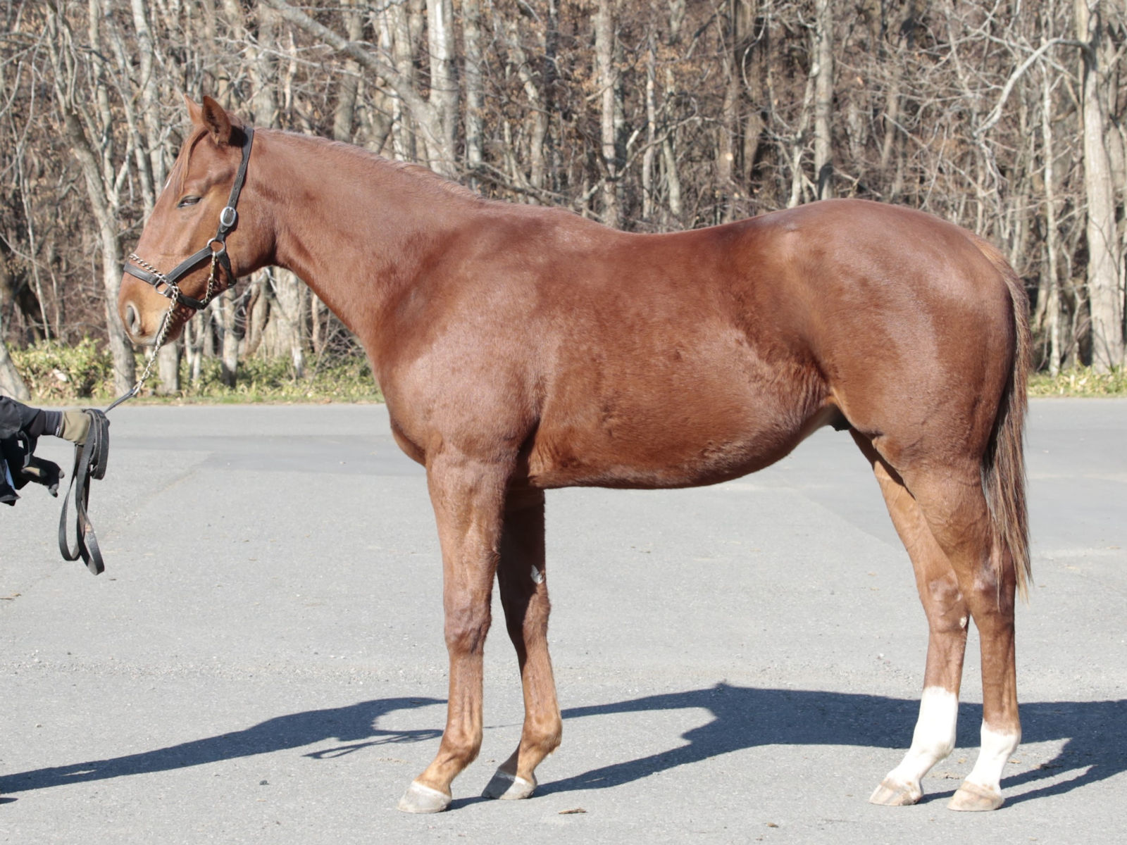 担当者は「先月下旬からは坂路調教に移行し、昼夜放牧を切り上げて乗り込みに専念しています。坂路はダクで急坂を上がり、その後ハッキングまでペースを上げるという軽めのメニューですが、パワーを感じさせる乗り味でおとなしく、特に注文がつきません。今後ペースを上げても問題なく動けそうな感触がありますし、スピードも持ち合わせていそうです」と話していました。