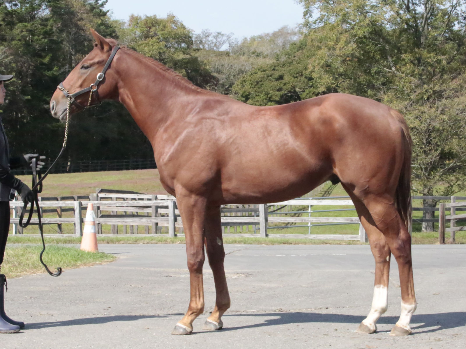 担当者は「先月下旬からは坂路調教に移行し、昼夜放牧を切り上げて乗り込みに専念しています。坂路はダクで急坂を上がり、その後ハッキングまでペースを上げるという軽めのメニューですが、パワーを感じさせる乗り味でおとなしく、特に注文がつきません。今後ペースを上げても問題なく動けそうな感触がありますし、スピードも持ち合わせていそうです」と話していました。