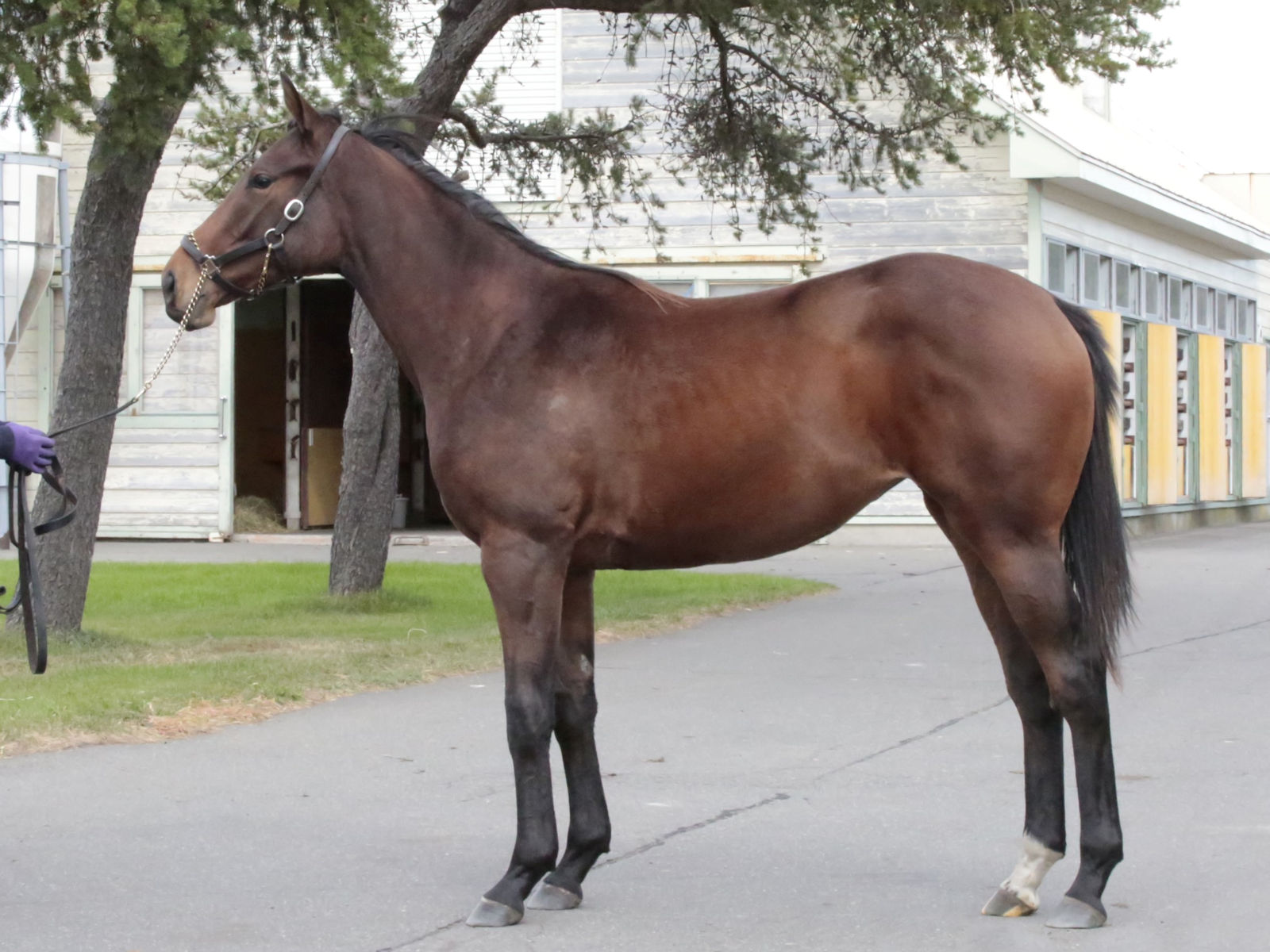 担当者は「7月下旬に初期馴致を終えて、その後は昼夜放牧を続けています。母の産駒らしく気の強さはありますが、タオルパッティング、胴締めはすんなりと受け入れてくれましたし、馬房の中で人が跨る段階までは問題なく進められています。ピリッとした面はありますが理解力がありそうですし、放牧地では機敏な動きも見せていて今後の成長が楽しみです」と話していました。