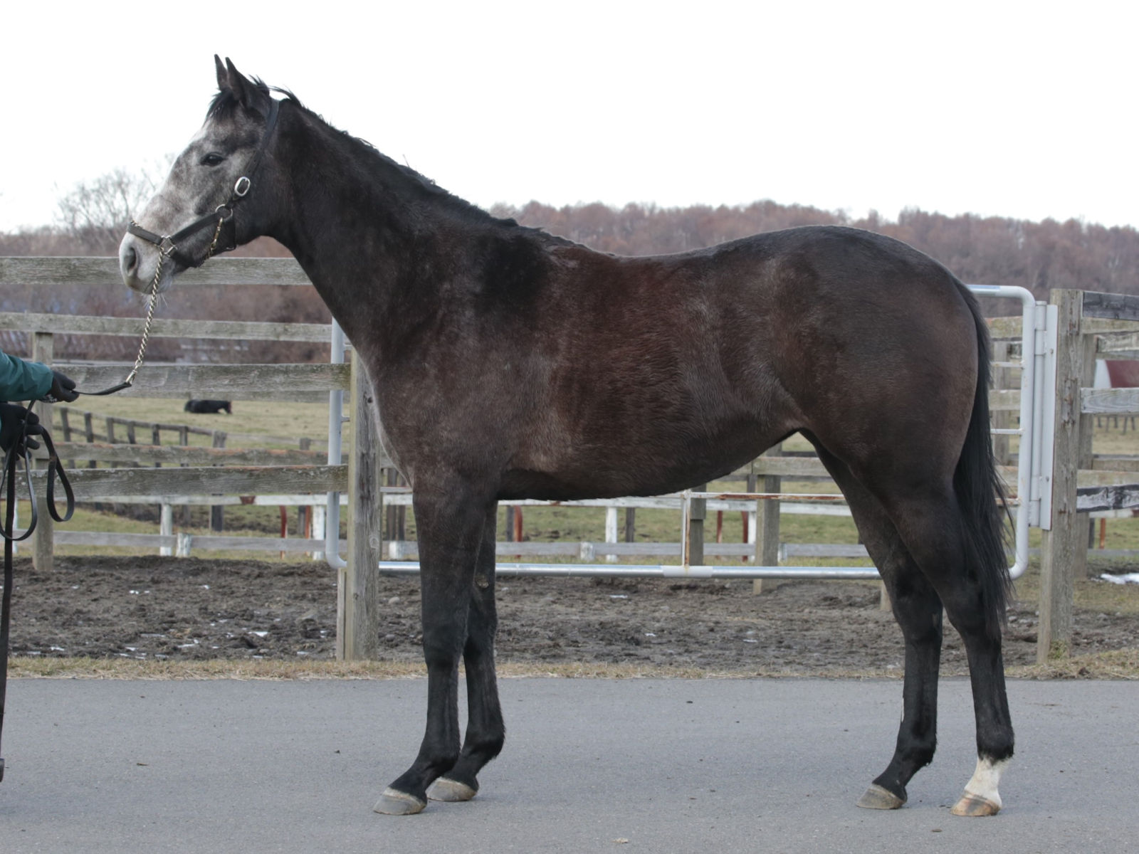 担当者は「馴致、屋内トラックコースでの調教を経て、坂路調教に移行しています。昼夜放牧を行いながら騎乗していた時は疲れもあったのか動ききれませんでしたが、今は乗り込みに専念し、疲れが取れたようです。それに伴って動きが良化してきました。おとなしく注文が付かないタイプで騎乗者も選びません。ゴールドシップ産駒らしく緩さがあるなりにも動けているので、これから徐々に力を付けてくれそうです」と話していました。